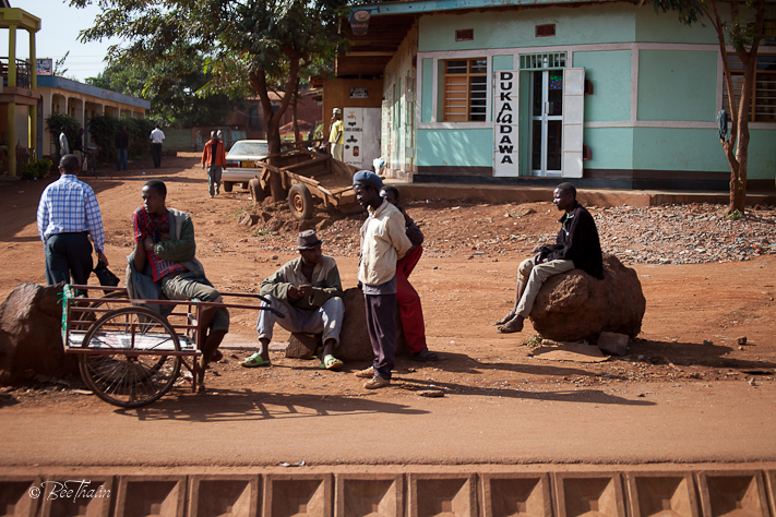 Innan vi fotograferade dem så gick vi fram för att be om lov. Flickorna sa att det var ok och för att visa vår goda vilja så gav vi dom en 5000-shillingsedel. Ojojojoj, vilken reaktion! De fullkomligt skrek och gestikulerade till deras mamma och ropade något till henne. Hon hade suttit med ryggen mot oss och inte verkar så glad över att vi var där. Men nu blev det annat ljud i skällan! Hon sken upp och såg väldigt glad ut. Efter en liten stund kom hon fram till oss.