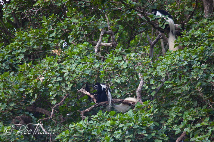 Våra första vilda djur blev några stora svartvita långhåriga apor. Kul!