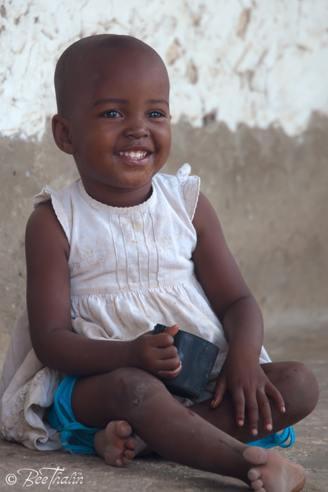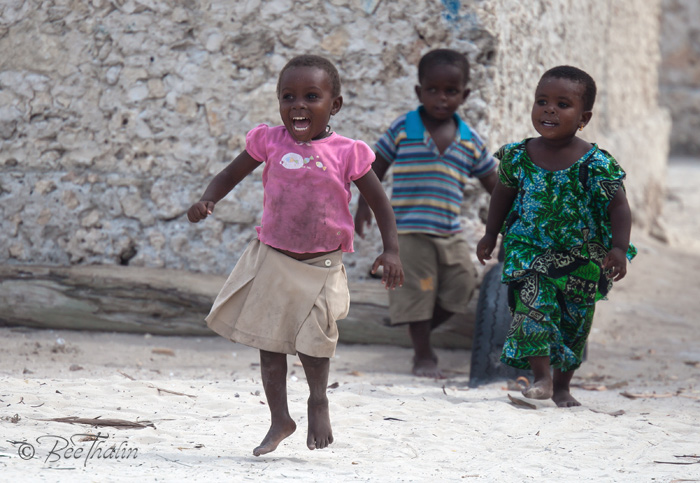 Under tiden vi satt där och väntade på vår chaufför så kom några barn springande.
