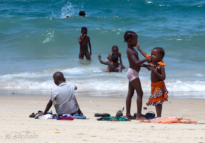 Här var det tomt på folk med undantag av en och annan färgklädd kvinna och några familjer. Det här stranden verkade vara populär att spendera helgen på.